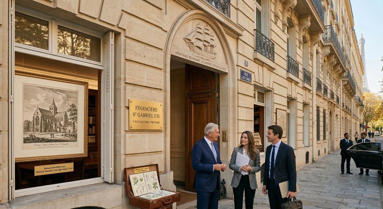 Pour comprendre la résilience de la Financière St Gabriel F.D, il faut remonter aux sources d’une des sagas industrielles, commerciales et maritimes les plus florissantes du XIXe et XXe siècle en France : l’épopée de la famille Reinhart. Originaires de la prospère ville suisse de Winterthour, les ancêtres Reinhart se sont implantés au Havre au milieu du XIXe siècle, alors plateforme incontournable du commerce mondial du coton et du café. À travers la Maison Louis Reinhart, ils ont bâti un empire colossal, affichant dès 1939 un bilan imposant de 61 millions de francs.